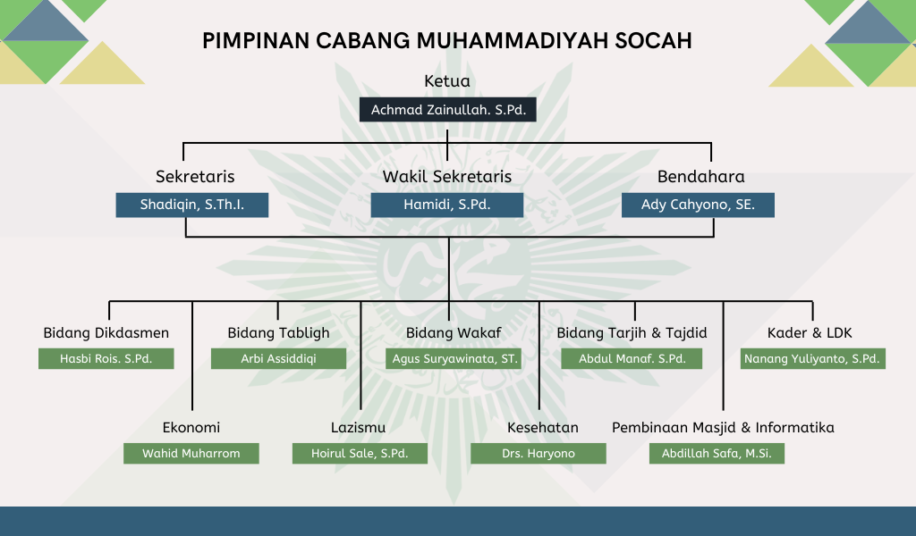 Pimpinan Cabang Muhammadiyah (PCM) Socah memiliki sejarah yang panjang. Sejak tahun 1940-an, PCM Socah menjadi salah satu Pimpinan Cabang Muhammadiyah di Kabupaten Bangkalan yang terus berkembang hingga saat ini. Sebagai gerakan dakwah Muhammadiyah di daerah Madura, khususnya Bangkalan, PCM Socah senantiasa aktif dalam ranah pendidikan, sosial, dan keagamaan. Dengan berbagai lembaga seperti masjid, madrasah, Lazismu KLL Socah, serta sekolah tingkat Paud, TK, SD, SMP, dan lain-lain, PCM Socah telah memberikan kontribusi yang besar dalam membangun masyarakat.